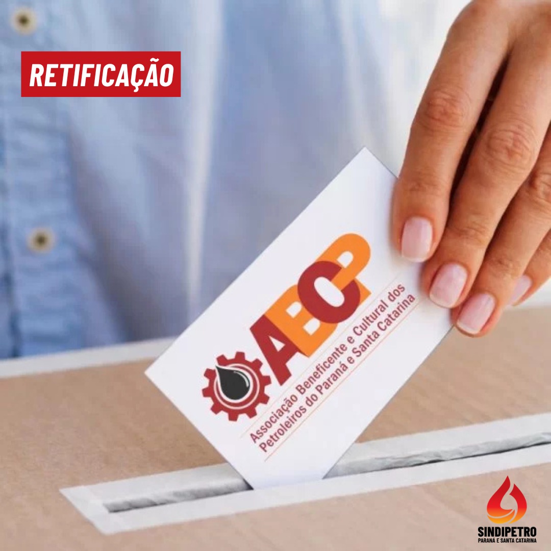A Associação Beneficente e Cultural dos Petroleiros do Paraná e Santa Catarina (ABCP) informa a retificação dos horários de votação na Refinaria Presidente Getúlio Vargas (Repar) para o processo eleitoral que ocorre de 4 a 8 de maio de 2026.
