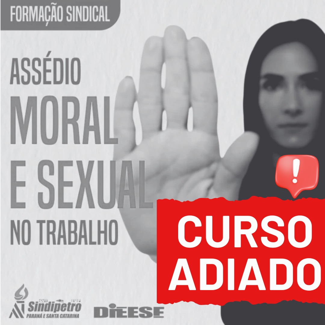 O módulo do curso do Programa de Formação: Trabalho e Sindicalismo, promovido pela Escola Dieese de Ciências do Trabalho em parceria com o Sindipetro PR e SC, que trataria dos assédios moral e sexual no ambiente de trabalho, foi adiado. As aulas estavam previstas para ocorrer nos dias 21 e 28 de maio, no formato online.