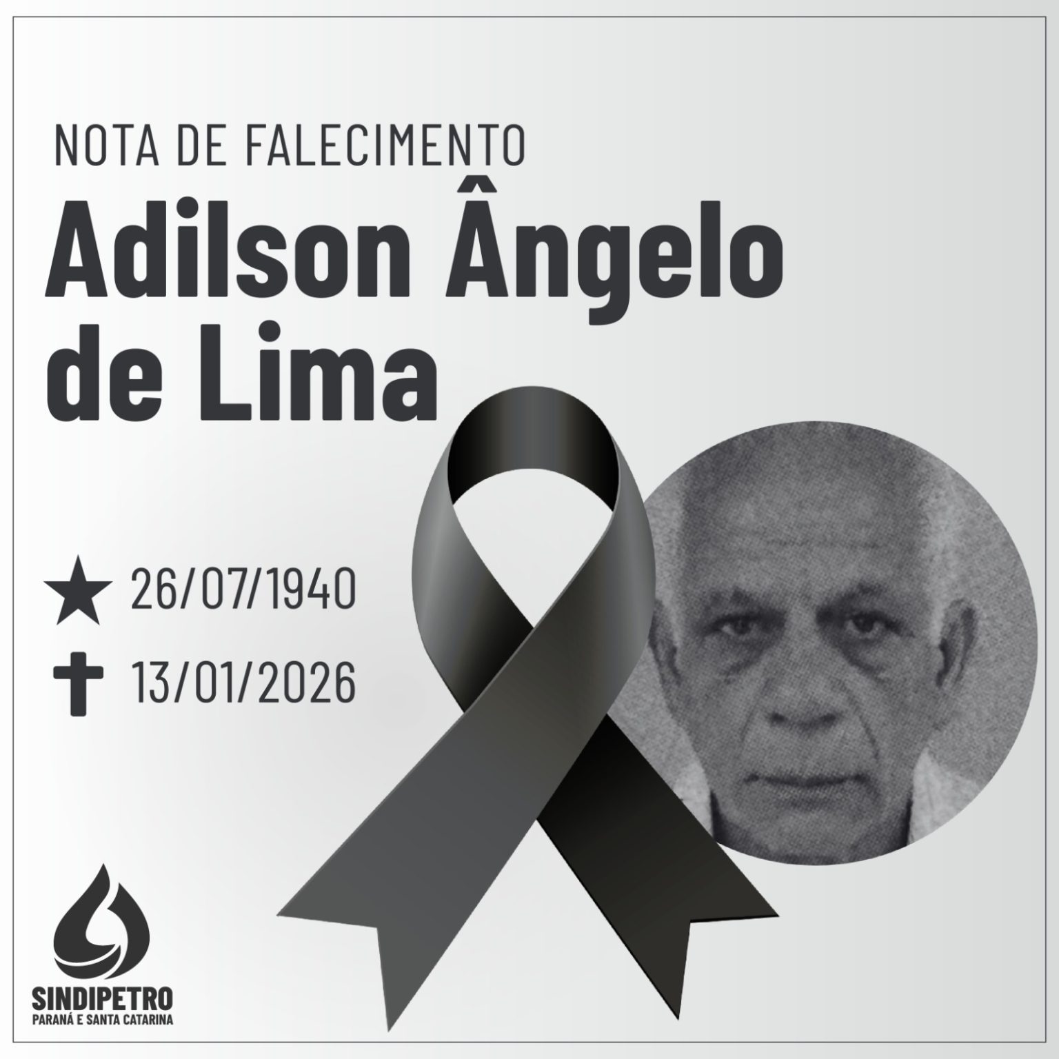 O Sindipetro Paraná e Santa Catarina lamenta informar o falecimento do companheiro Adilson Ângelo de Lima, aos 85 anos, nesta terça-feira (13), no Hospital das Nações, em Curitiba (PR).