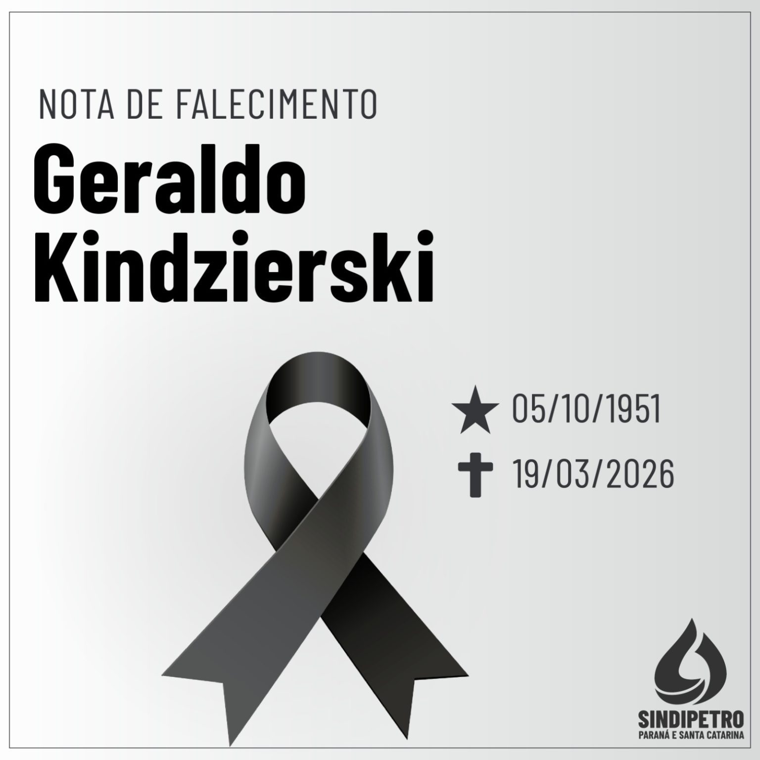 O Sindicato manifesta suas condolências e solidariedade aos familiares e amigos de Geraldo Kindzierski neste momento de profunda dor.